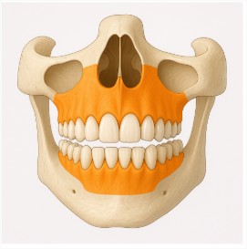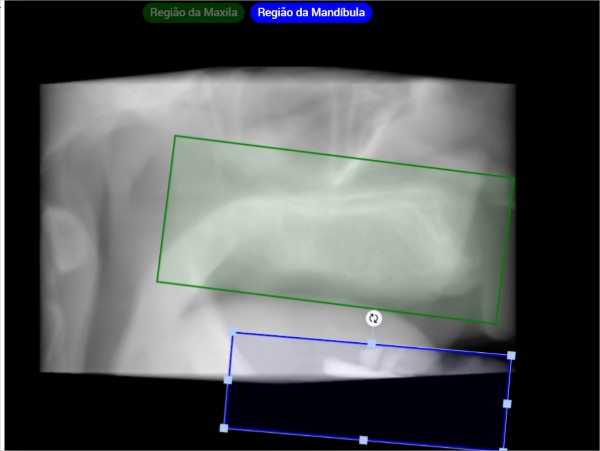 Exemplo: o exame mostra só maxila, mas a IA tenta marcar maxila + mandíbula.